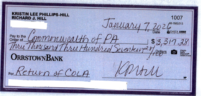 In 2023, I rejected the automatic COLA and returned it back to the Treasury. (Receipt from Treasury)
